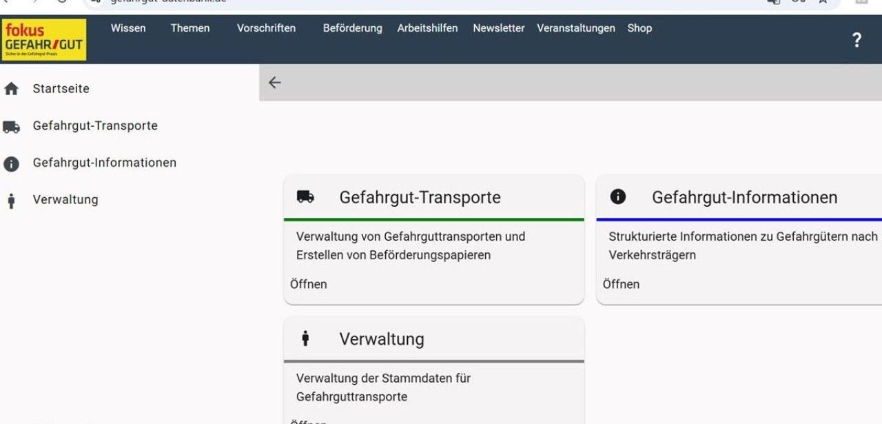 Die neu entwickelte Transportfunktion im Arbeitsportal fokus GEFAHR/GUT optimiert sämtliche Prozesse rund um den Gefahrgutverkehr. Anwender können per Suche sämtliche UN-Nummern sowie zugehörige Vorschriften schnell aufrufen und über individualisierte Masken Beförderungspapiere mit automatischer Plausibilitätsprüfung generieren. Unterstützt werden Lkw, Waggons, Containerschiffe und multimodale Verkehre. Ein integriertes Reportingmodul liefert Auswertungen zu Transportbedingungen, Fristen und Compliance-Statistiken, während ein zentrales Stammdatenregister maximale Transparenz schafft. Die benutzerfreundliche Oberfläche mit Kontexthilfen und Echtzeitwarnungen unterstützt tägliche Arbeitsabläufe.