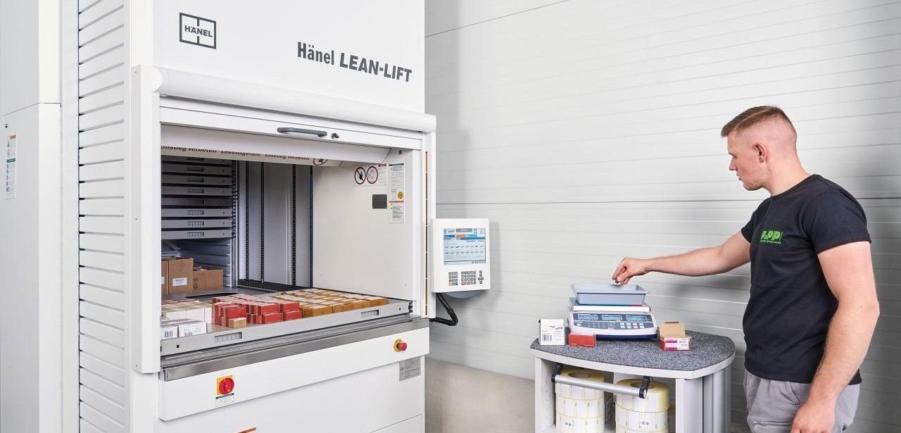 Mit dem Hänel Lean-Lift(R) schafft die Popp GmbH & Co. KG am Standort Forchheim eine effiziente, platzsparende Lagerlösung nahtlos direkt in der Produktionsumgebung. Die MP 14 N Steuerung mit großem 12-Zoll-Touchscreen erlaubt intuitive Bedienung, während die PictureControl-Kamera eine visuelle Kontrolle sicherstellt. Die integrierte Zählwaage und der Etikettendrucker automatisieren Mengenprüfung und Kennzeichnung. Eine Zugangscodeverwaltung ergänzt die Prozesssicherheit. Durch die vertikale Lagertechnik werden Laufwege minimiert, Abläufe spürbar beschleunigt und maximale Platzreserven aktiviert.