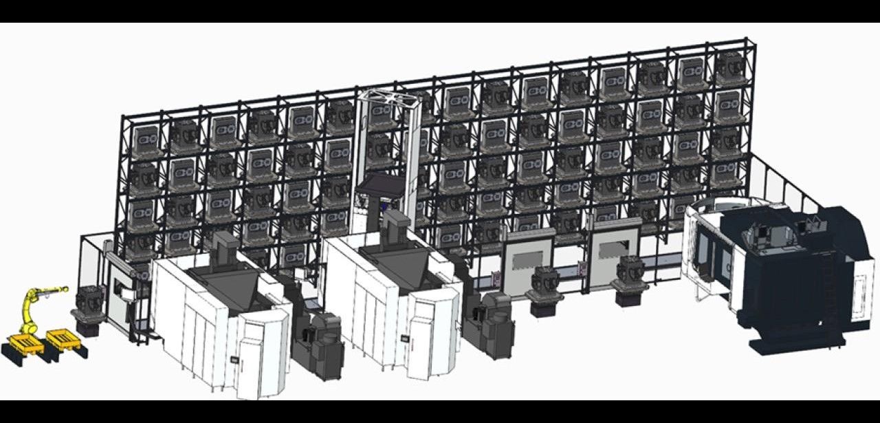 Modular erweiterbares Palettenspeichersystem garantiert mannlose Fertigung und flexible Produktionsplanung